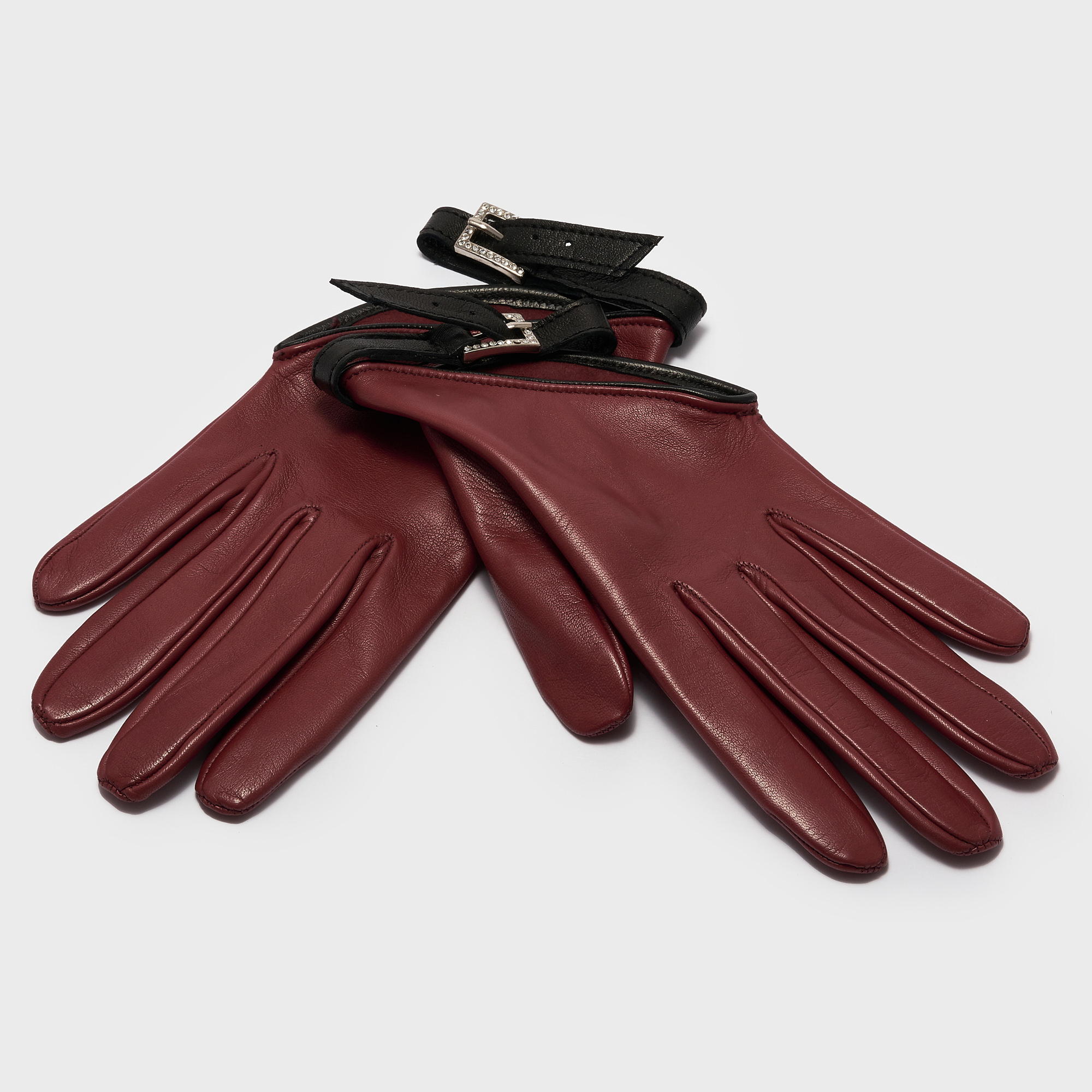 Опис: Рукавички ручної роботи, виготовлені майстрами в Італії з високоякісної Італійської шкіри. Пряжка-прикраса з кристалами як імітація годинника на зап'ясті додає вишуканості та унікальності. Зрізаний край рукавички додає цікавості і привабливості руці.