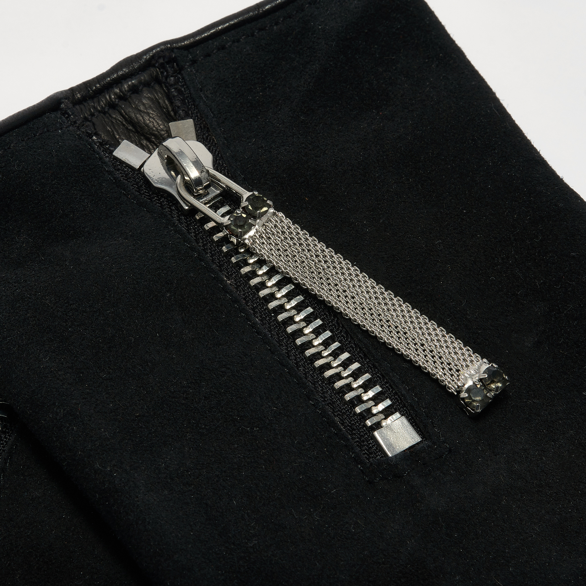 Опис: Рукавички ручної роботи, виготовлені майстрами в Італії з високоякісної Італійської шкіри. Виконані в стилі sleeve-shaped рукавички, декоровані молнією і замком з кристалами.